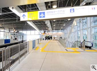 - 自國外扺達的旅客,從國際線旅客候機樓的2F入境出口,通過同一樓層的驗票口,只要上1樓層就是月台,每3分~5分間隔(白天)的運行,讓移動變得更順暢。(請參考照片3、照片4)